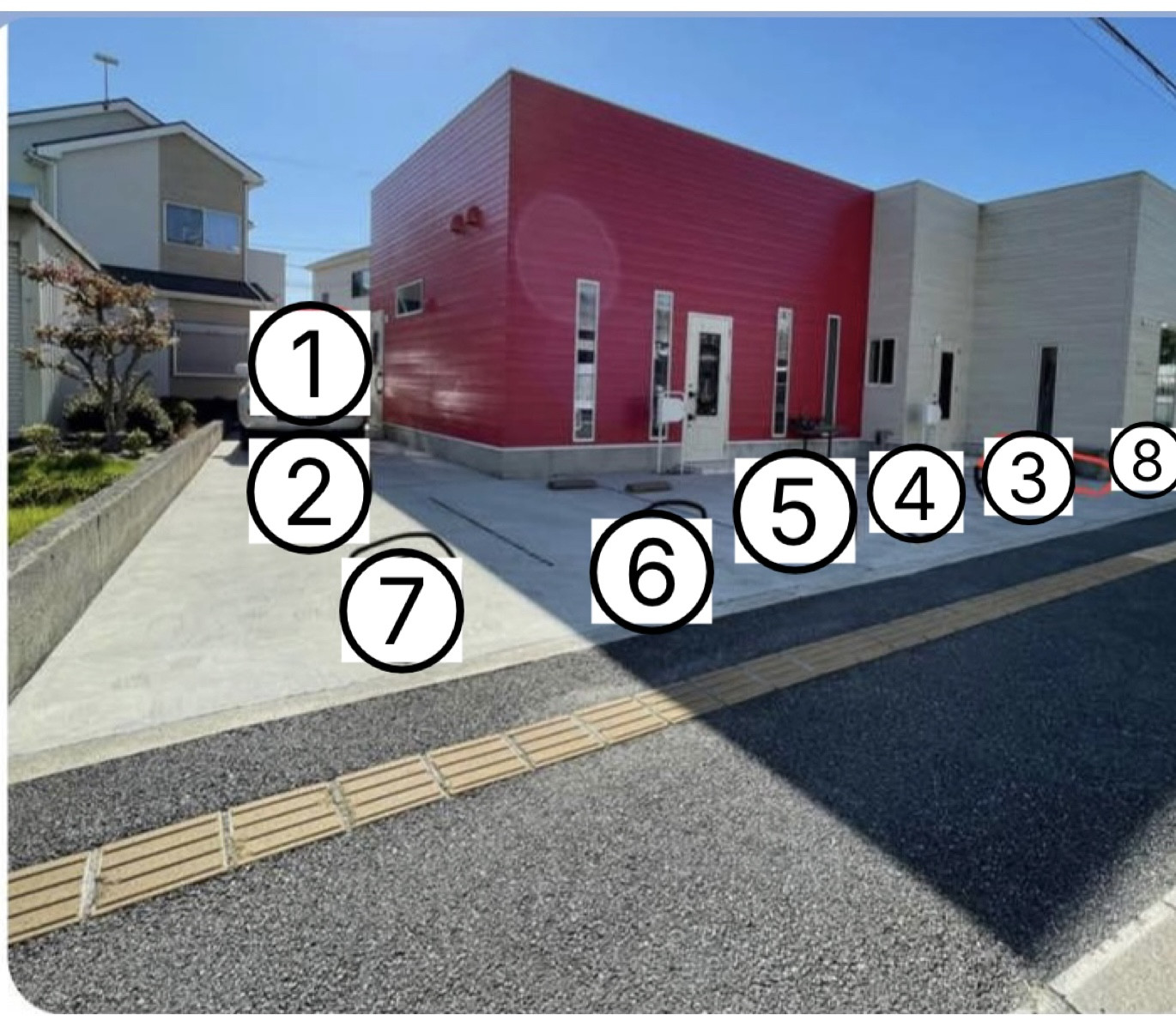 道路交通法上、駐車場前にガードレールがあるため写真③④のスペースがとめにくくなっています。