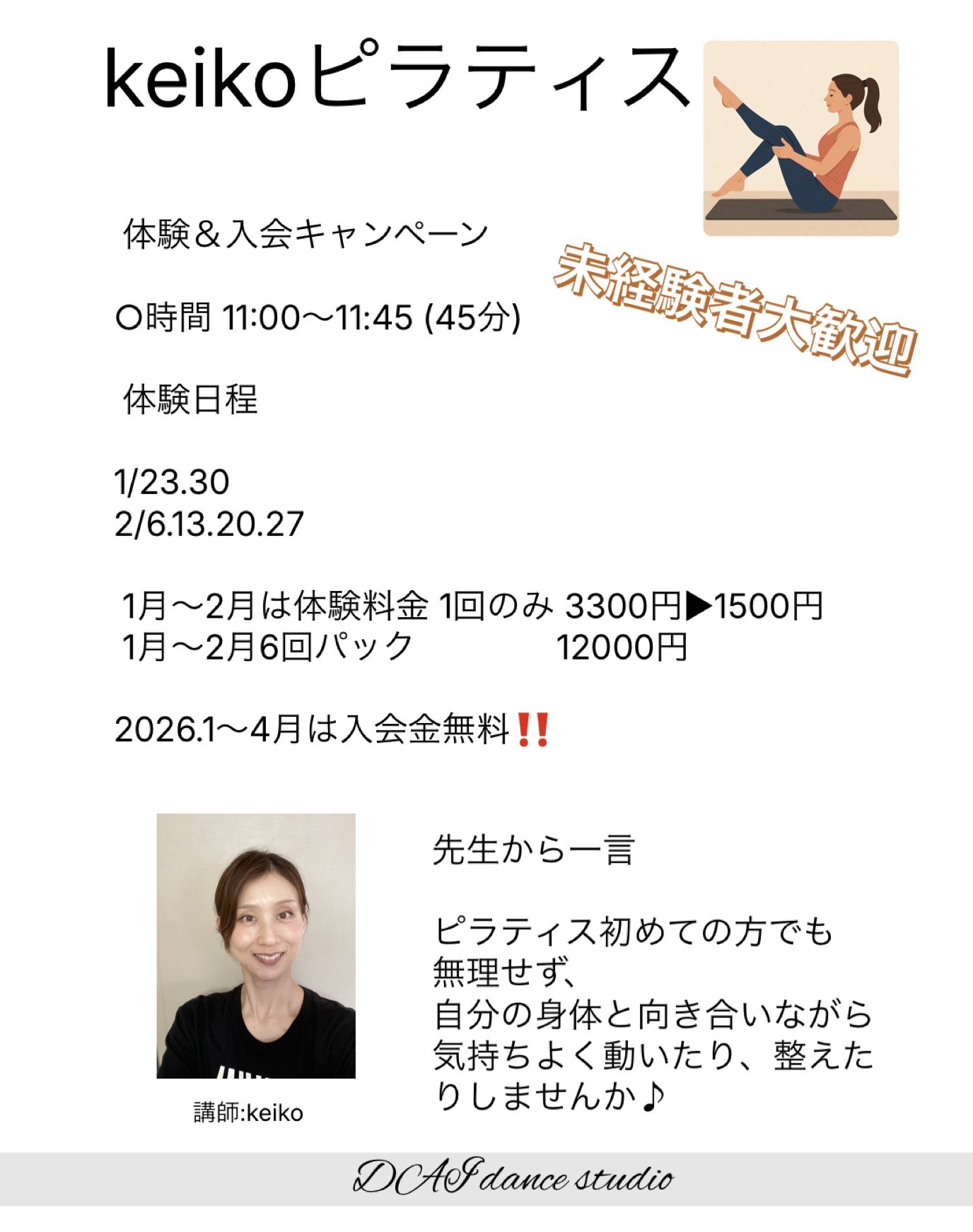 一言: ピラティス初めての方でも